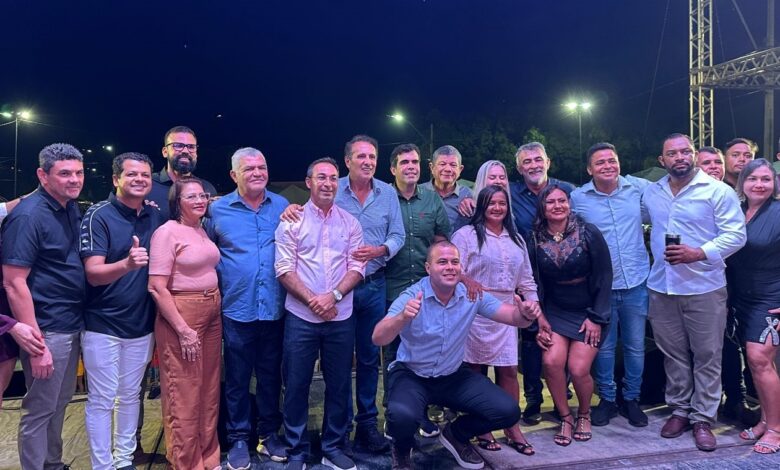 Ao lado do prefeito Aquiles da Areia (PP), dos deputados federais Carlos